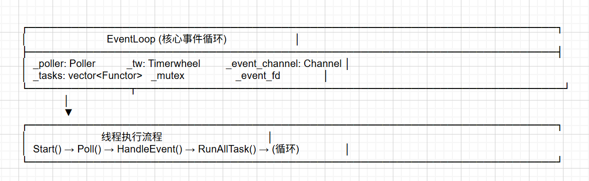 Channel用于对事件监控的管理,监控实现由Poller提供,EventLoop对应一个单线程任务处理,Start()开始任务的处理,同时保证任务执行在单线程内。