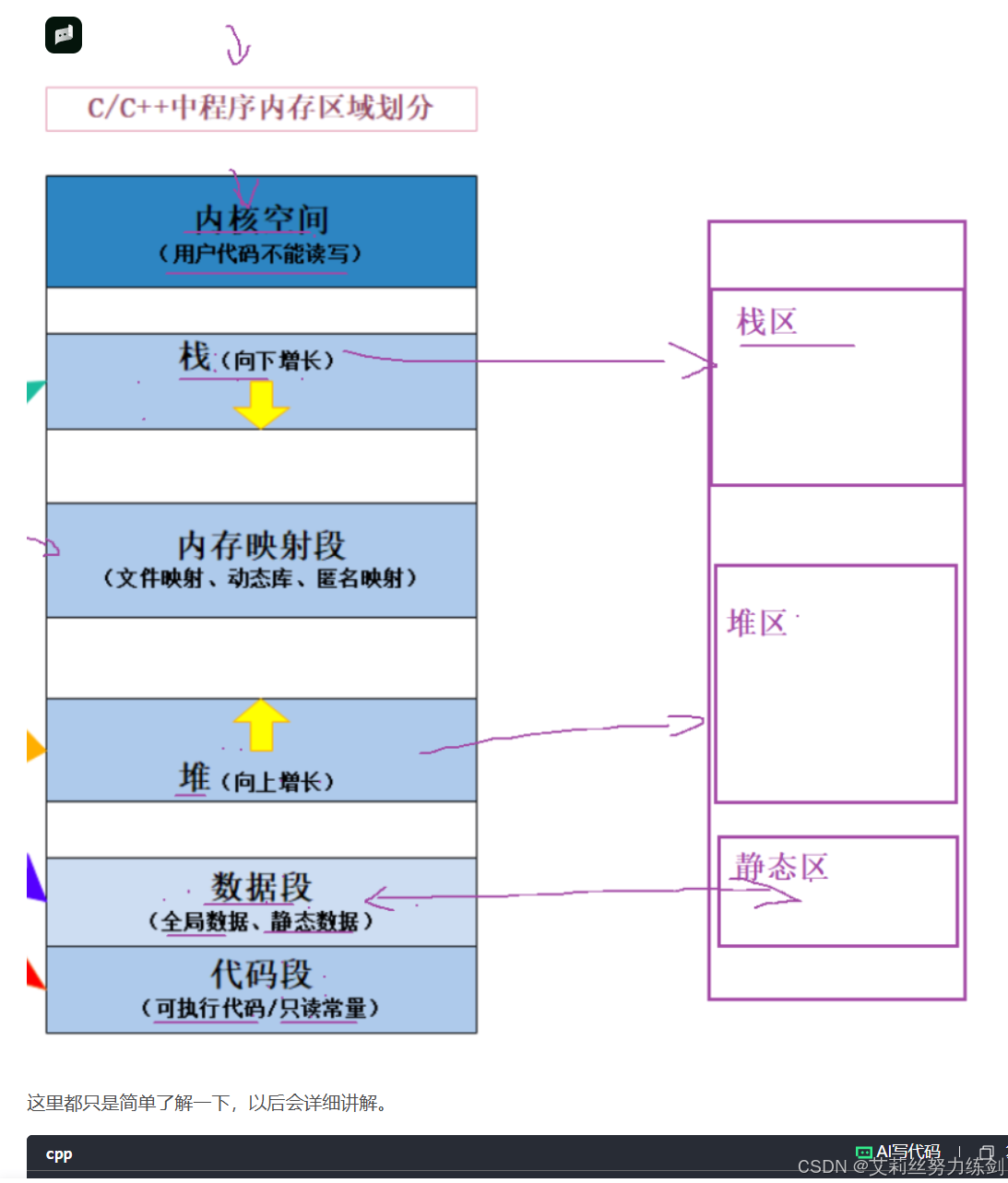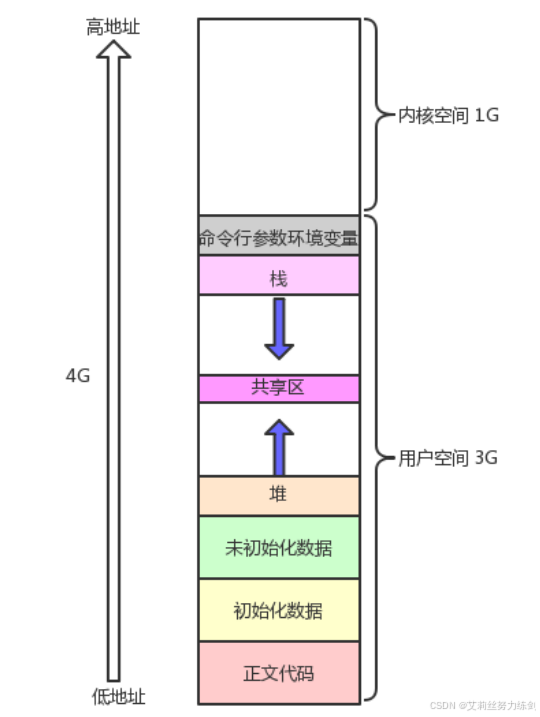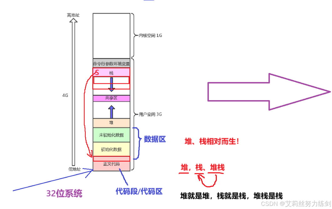 艾莉丝在介绍C语言部分的时候,应该给大家展示过这样的空间布局图------