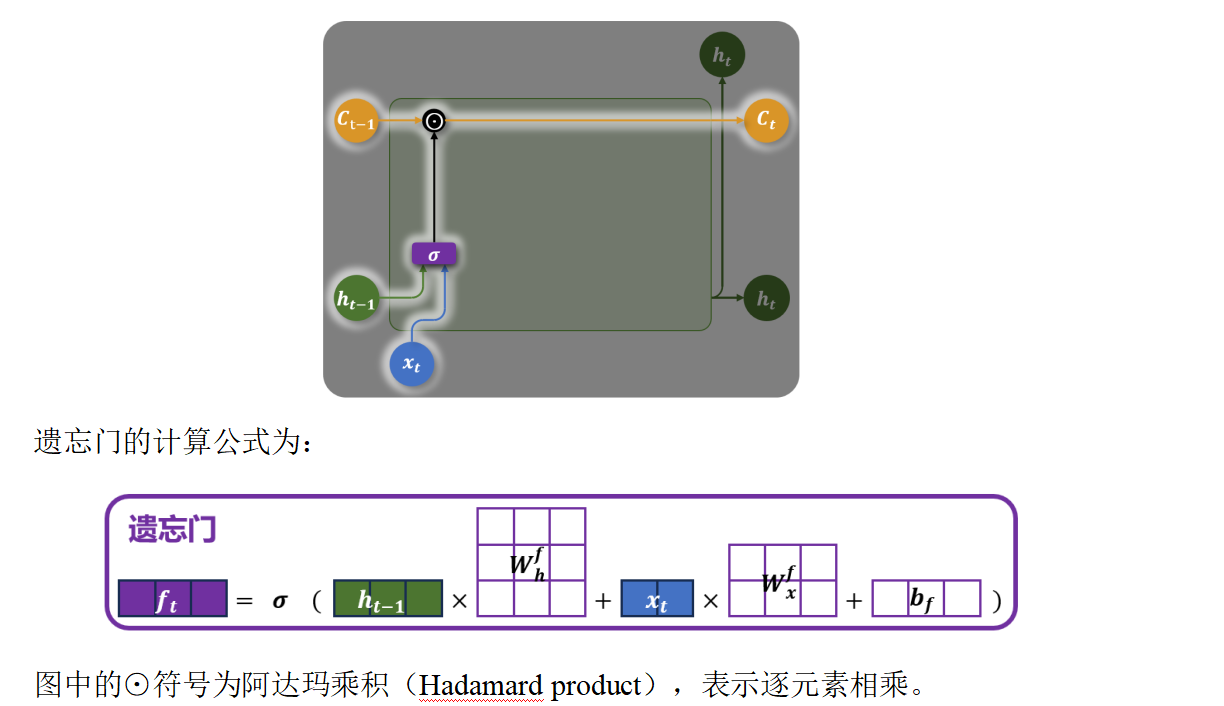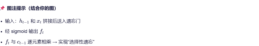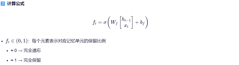 - 遗忘门(Forget Gate):决定哪些旧信息从Ct中丢弃。