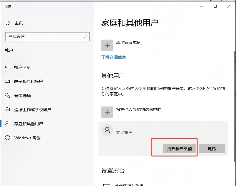 回到"家庭和其他用户"页面,点一下刚建好的账户 → 更改账户类型 (图5)→ 选 "管理员" → 确认 (图6)(方便以后装软件)