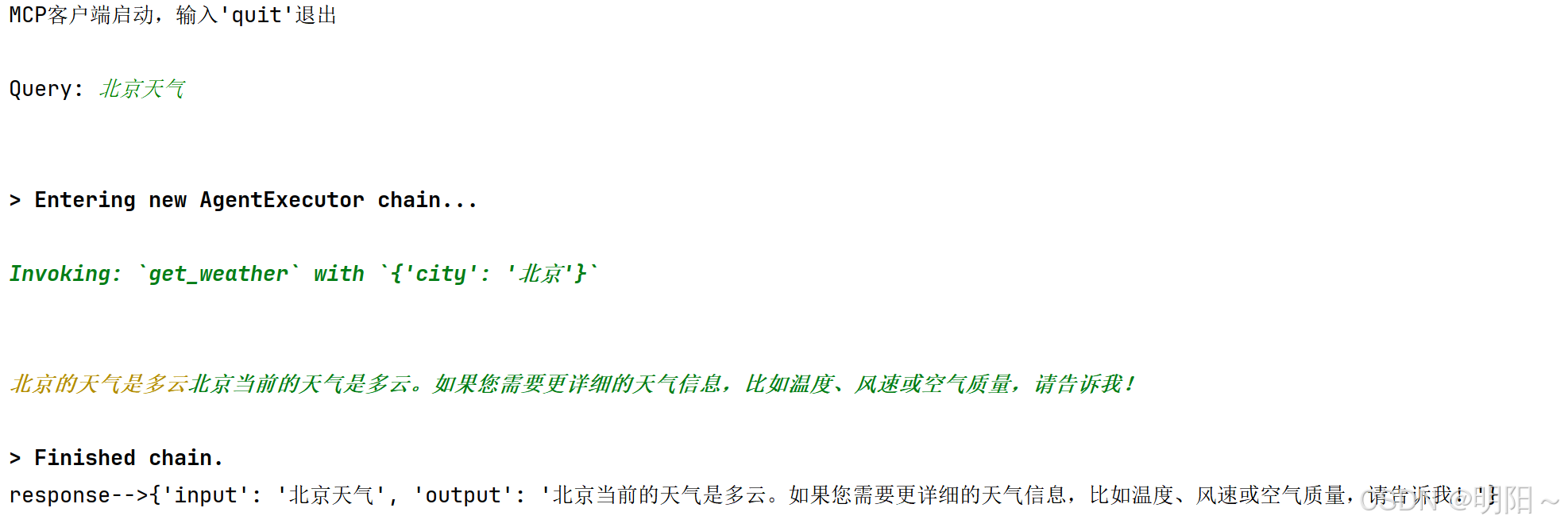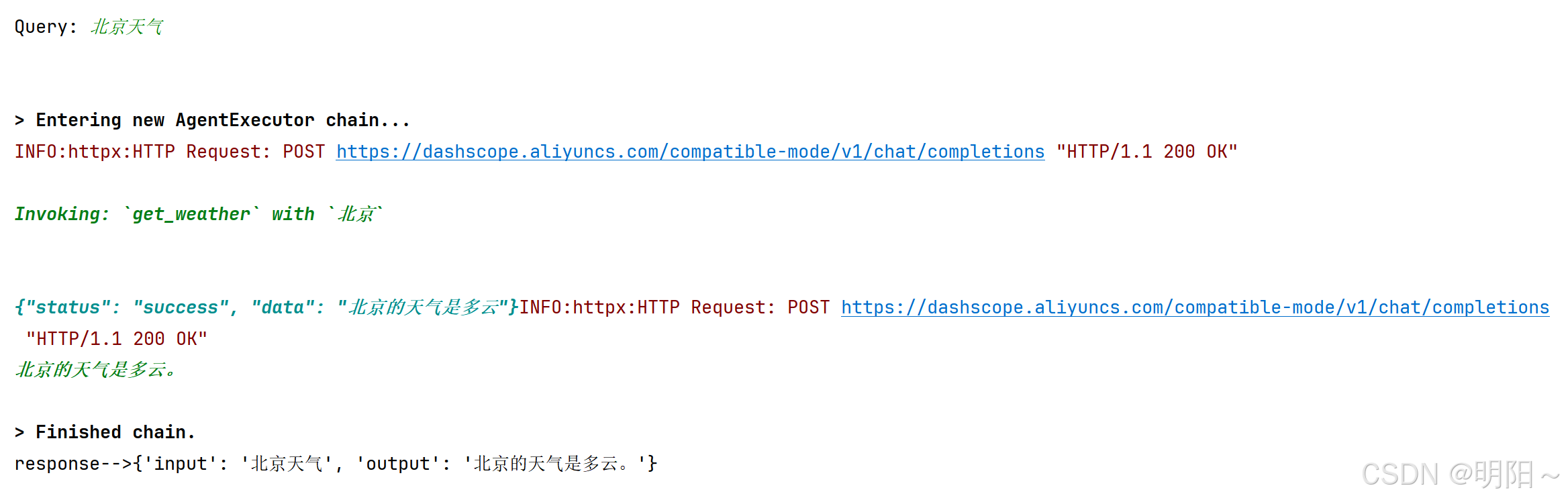 返回示例:{"status": "success", "data": "北京的天气是多云"}