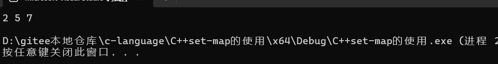 这里要注意的是set的find接口的返回值是一个迭代器类型(前⾯部分我们讲了vector/list等容器的find接口返回值的是bool类型),注意如果没有找到就返回迭代器end()。