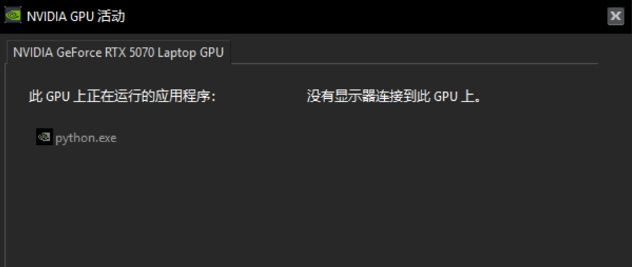 执行 python 代码训练模型,显示 NVIDIA GPU 运行应用程序