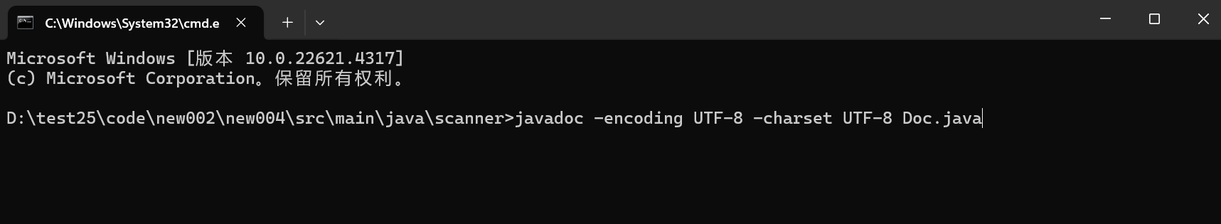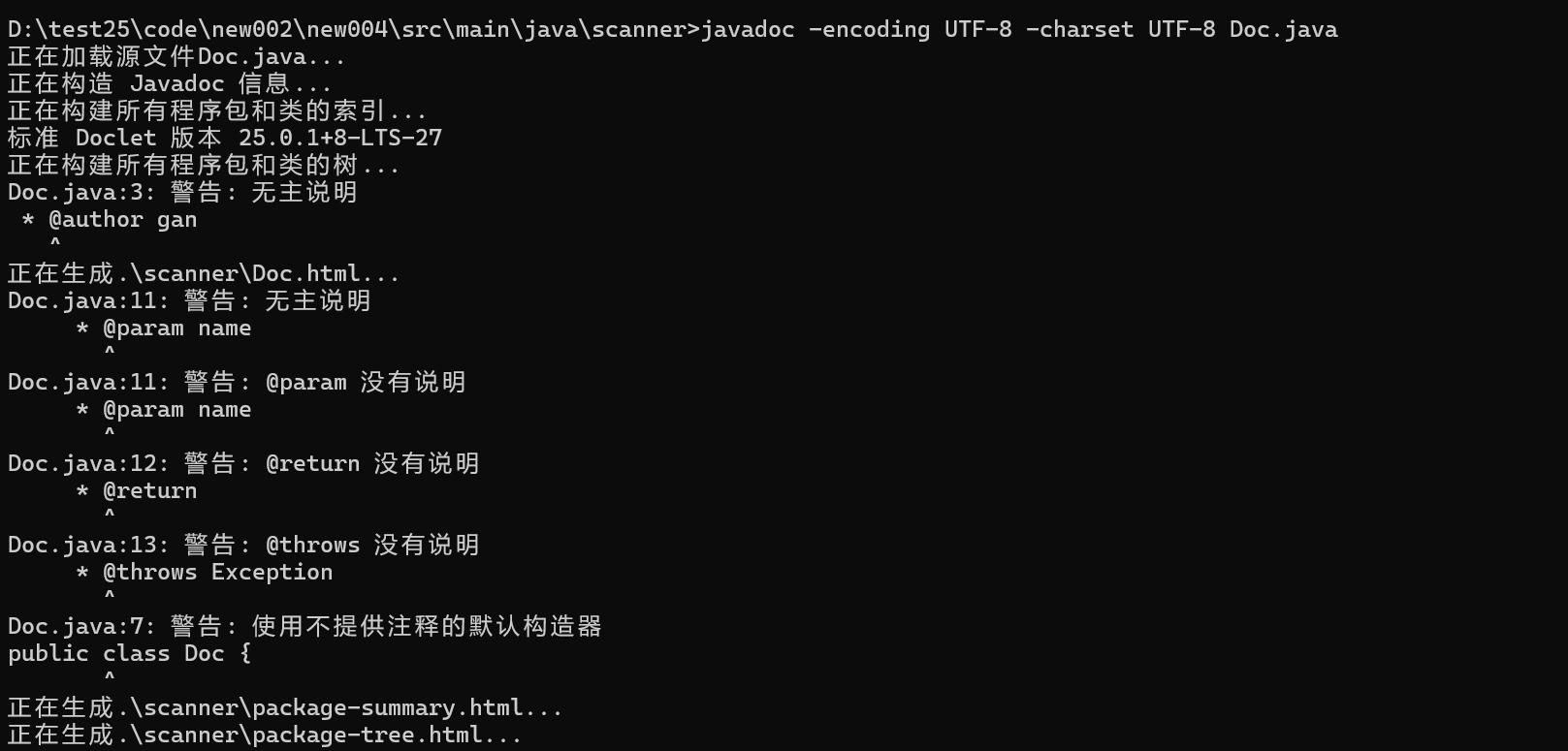 - 运行命令如下:javadoc -encoding UTF-8 -charset UTF-8 Doc.java