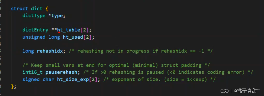 signed char ht_size_exp[2] 存储指数,快速计算表的size,同时对取模运算的优化。