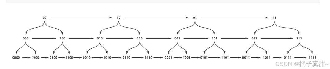 如上图,如果一个数据的二进制末尾是00,那么扩容后一定在末尾二进制为00的桶中。依次迭代就能保证遍历所有的数据