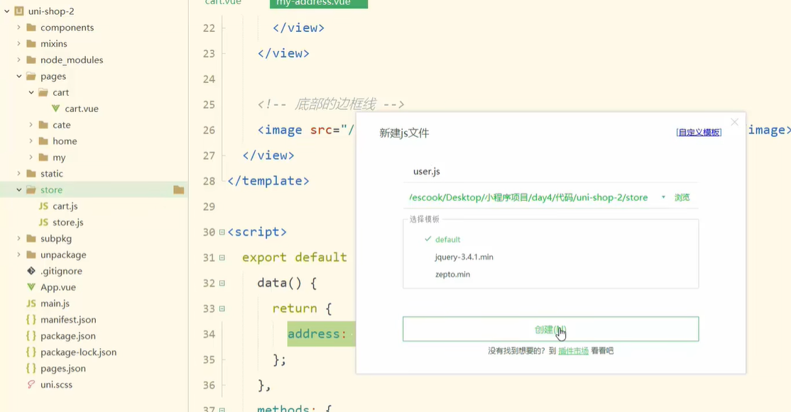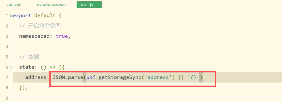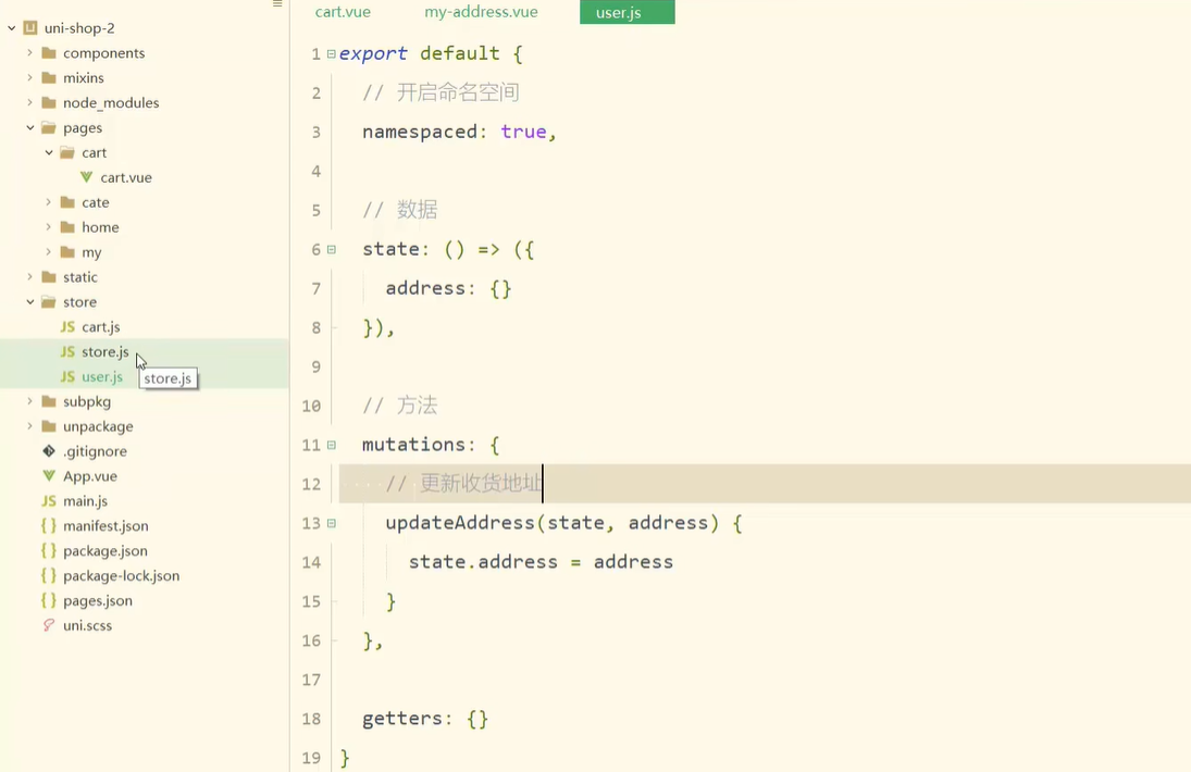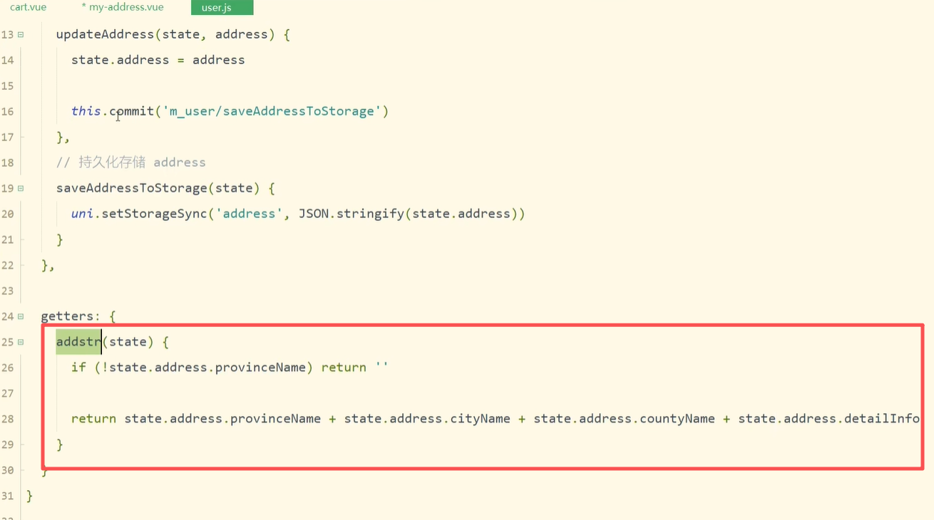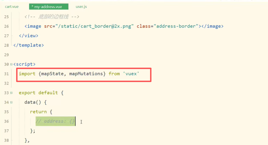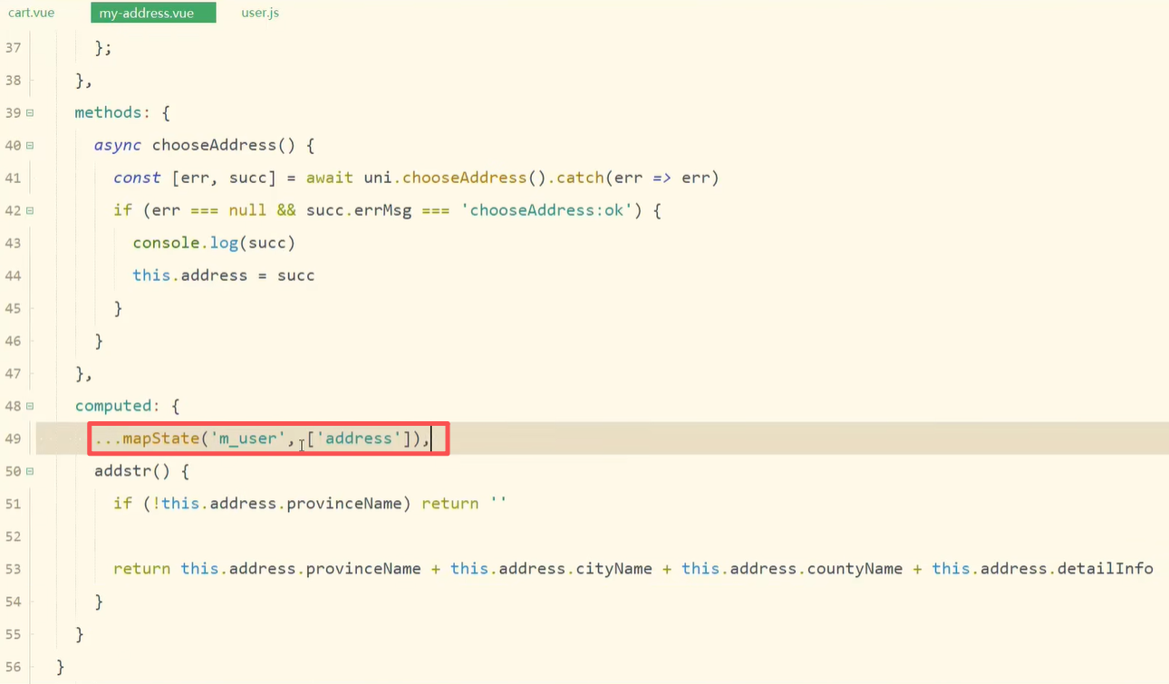 4.购物车页面-收货地址-把address信息存储到vuex中