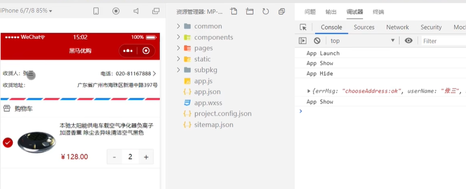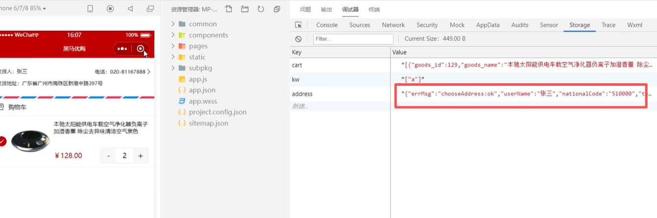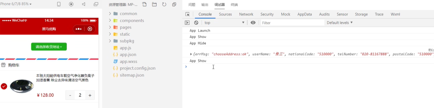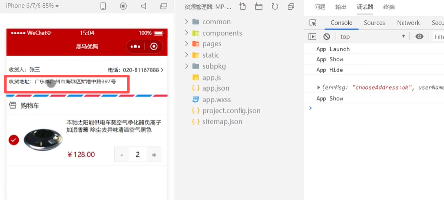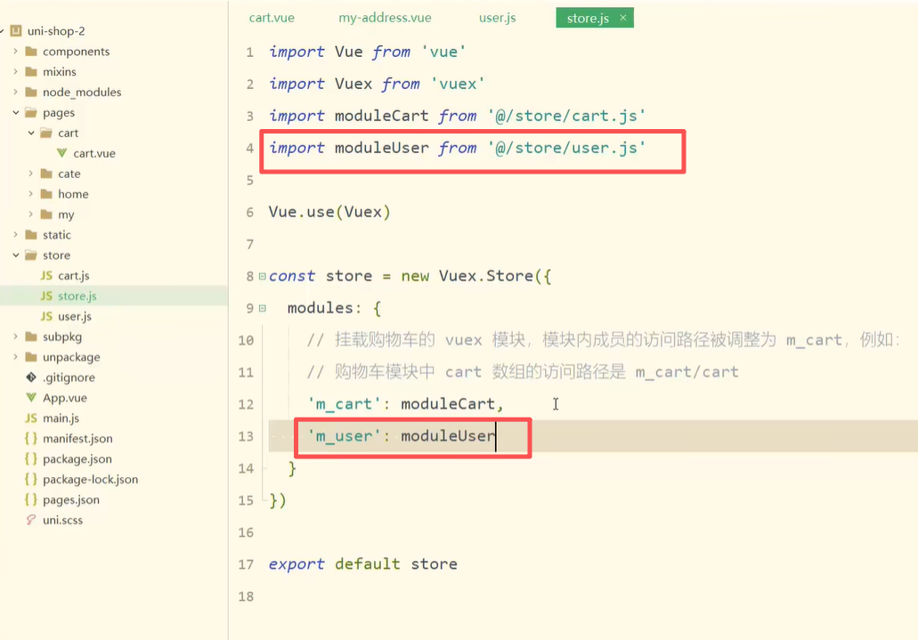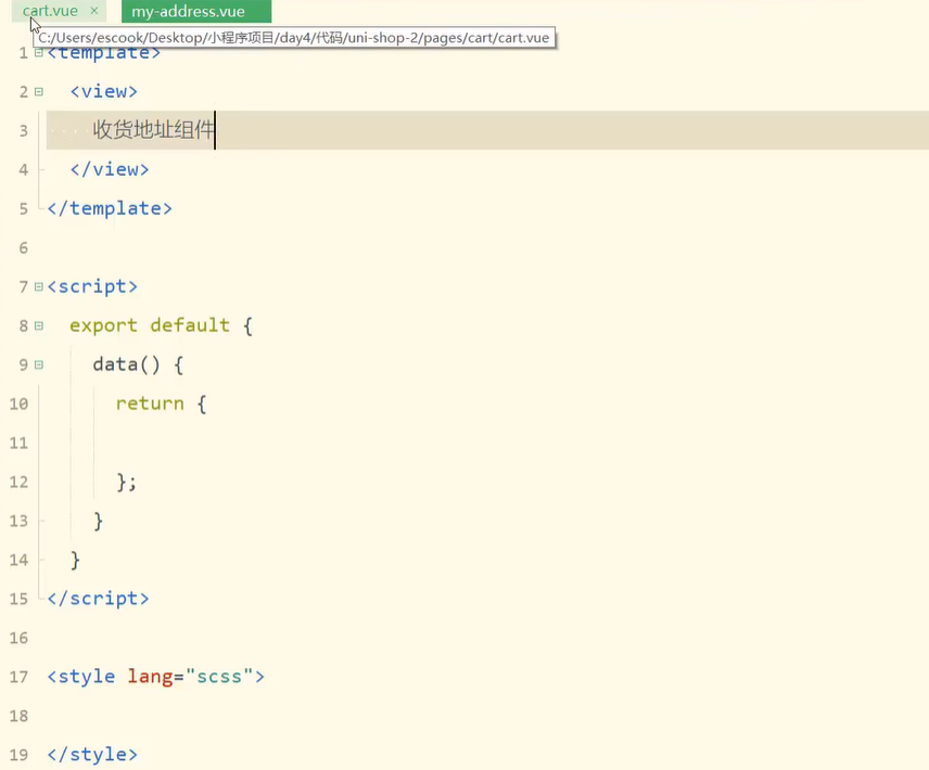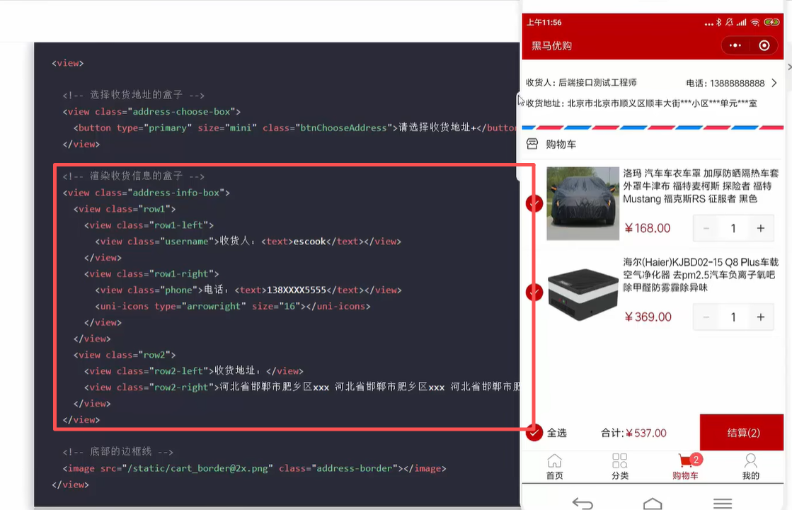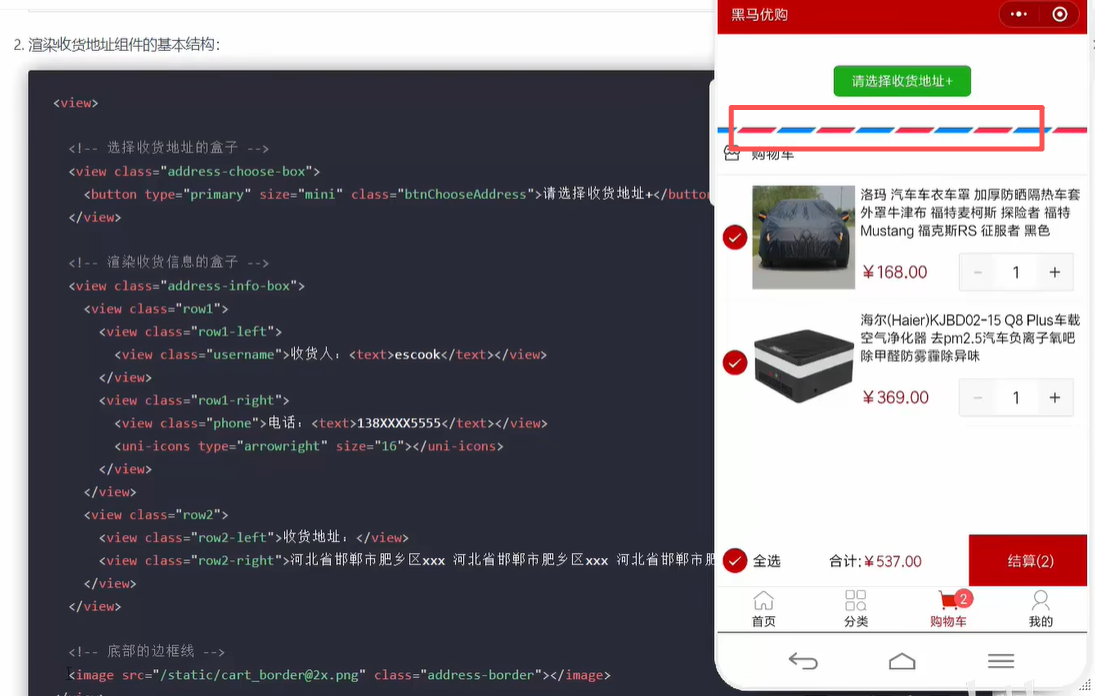 4.购物车页面-收货地址-把address信息存储到vuex中