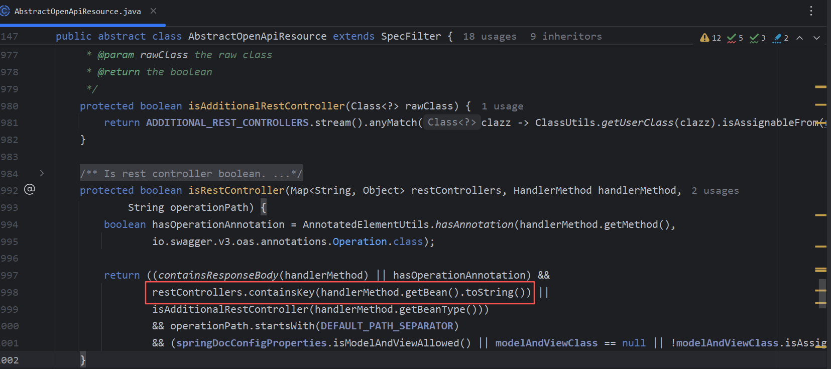 此时我们发现插件GroupedOpenApi有了,但插件接口列表没有呈现,同时主应用的接口列表悄无声息已无,于是乎开始自定义OpenApiResource调试等等系列操作,底层最后在构建计算接口列表等等时有一个方法引起重要关注