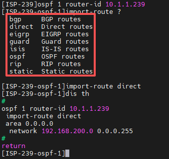 #ospf 1 router-id 10.1.1.239 import-route direct