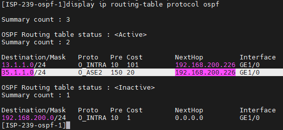 测试访问也没有问题。接下来,让我们配置一下在OSPF进程中引入自治系统外部路由。