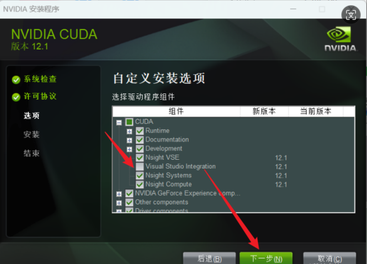 如果计算机上已经安装了与CUDA版本相兼容的Visual Studio Integration文件,或者通过其他方式(如单独安装Visual Studio的插件)已经集成了CUDA支持,那么在安装CUDA时勾选"Visual Studio Integration"可能会导致冲突或重复安装,进而引发问题。
