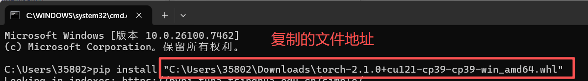 在终端里输入pip install 文件地址