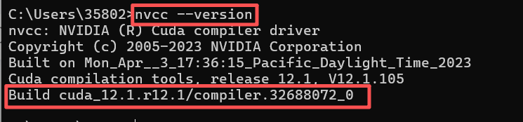 在命令提示符内输入命令nvcc --version 或者nvcc -V,查看是否有cuda,如果有则安装成功,如果没有则可能版本不兼容