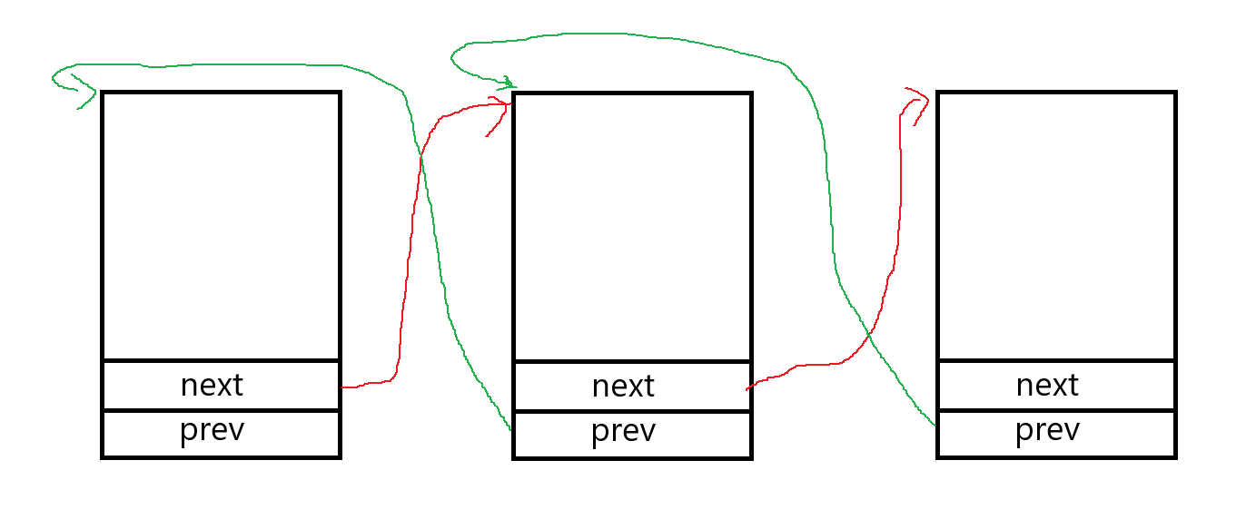 平时我们使用的双链表是这样的,这样不论prev还是next都指向的是一个节点开头的地址。