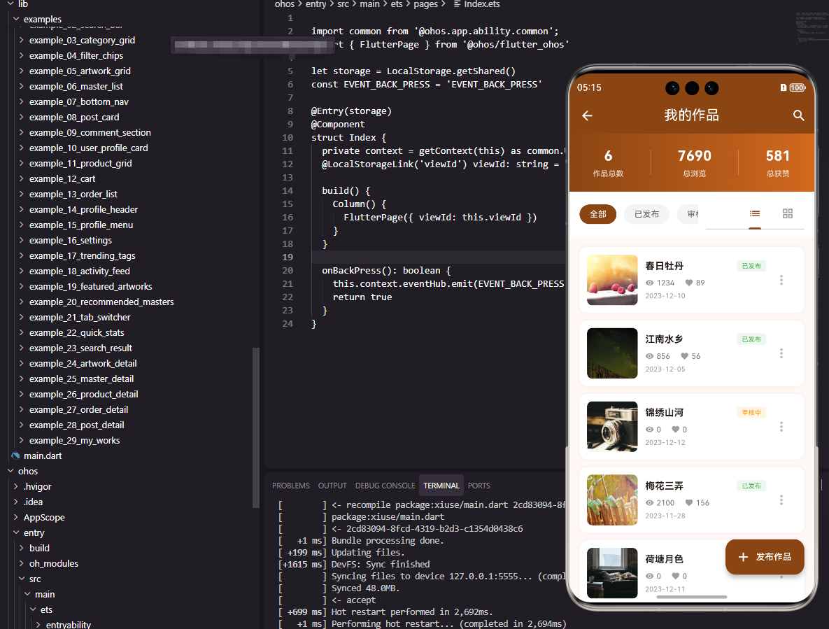 我的作品页面是创作者管理自己发布内容的重要页面。它需要展示作品列表、支持作品管理(编辑、删除)、提供发布新作品的入口。本文将详细介绍如何在Flutter和OpenHarmony平台上实现一个功能完善的我的作品页面。