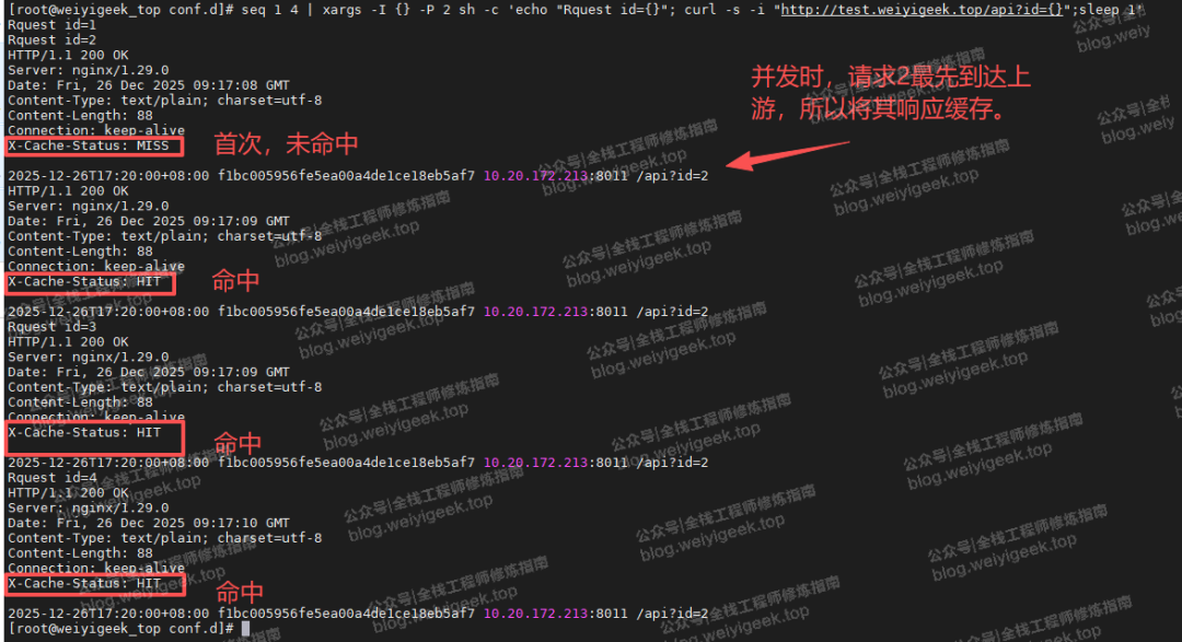 缓存建立后,所有等待中的请求均从缓存中获得响应,从而显著减少对上游的并发冲击。