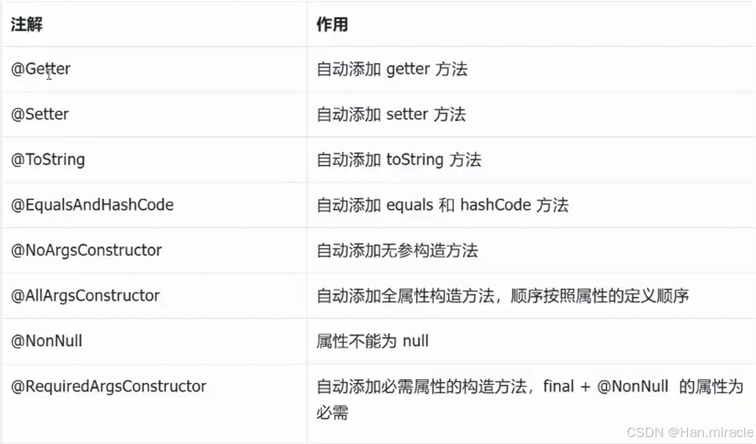 如果觉得 @Data 比较粗暴 (生成方法太多),lombok 也提供了一些更精细粒度的注解