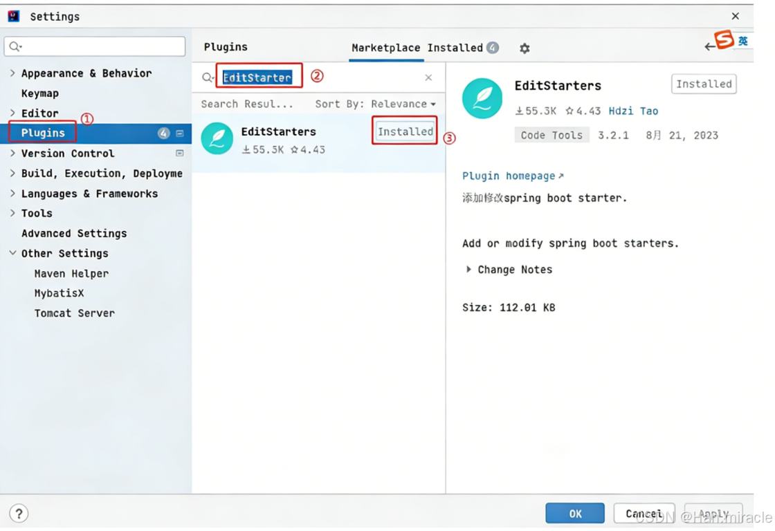 进⼊EditStarters的编辑界⾯,添加对应依赖即可