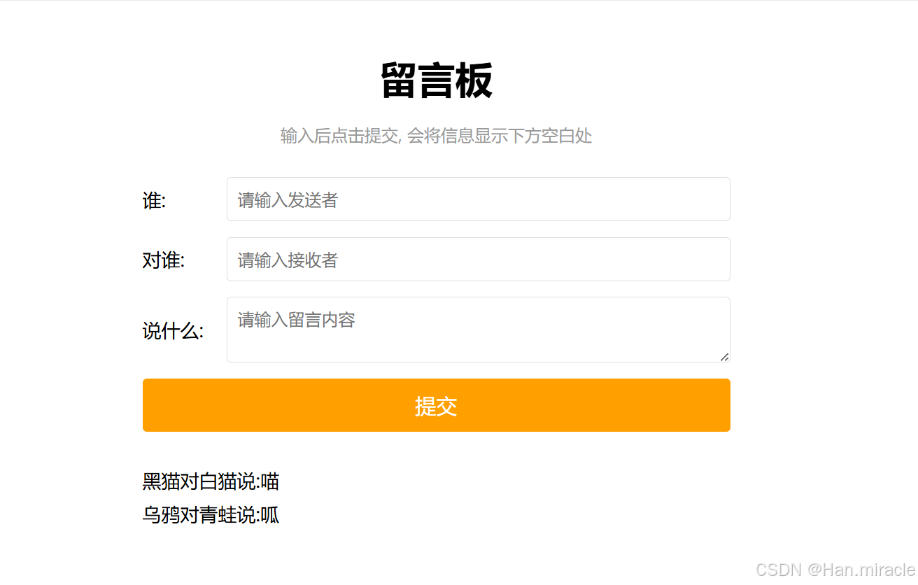 - 输入留言信息,点击提交。后端把数据存储起来.