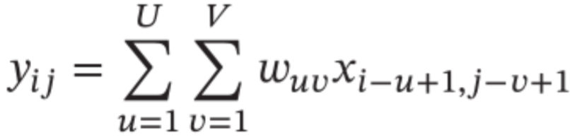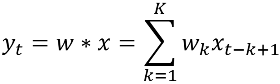 一维卷积在信号处理,计算信号的延迟累积;输入信号序列 x 和滤波器 w,