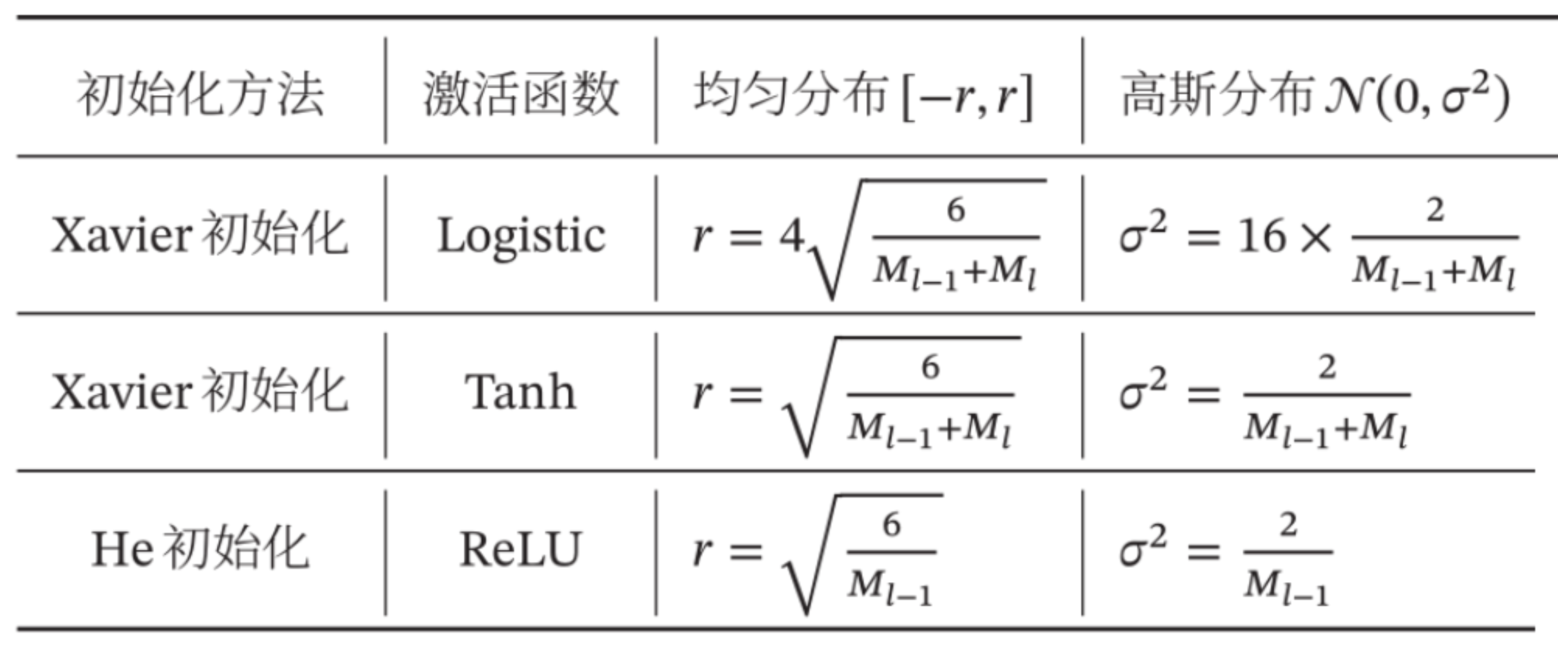根据 M 每层的神经元个数,根据损失函数 选取两种初始化。