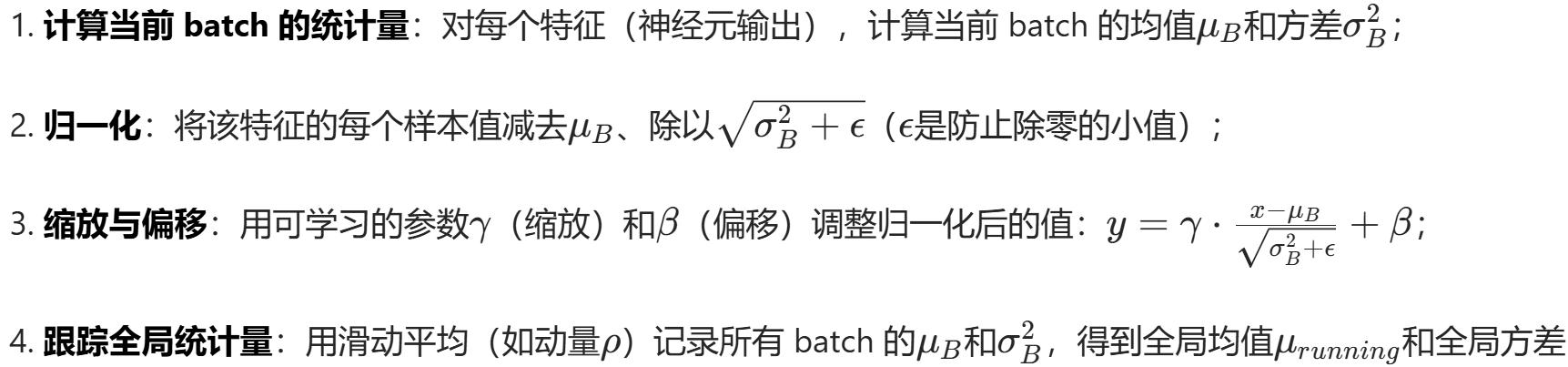 使用全局统计量 :不再计算当前 batch 的统计量,直接用训练阶段跟踪得到的