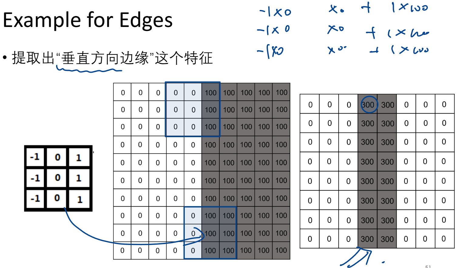 不同卷积核 适用于提取不同特征(下例为 提取一个竖直的墙)