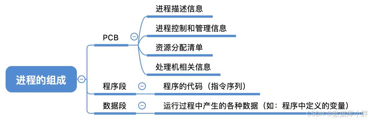 PCB是给操作系统用的。而程序段、数据段是给进程自己用的。