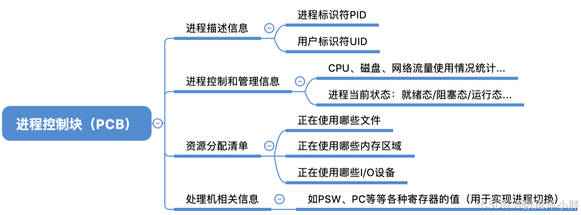 PCB是进程存在的唯一标志,当进程被创建时,操作系统为其创建PCB,当进程结束时,会回收其PCB。
