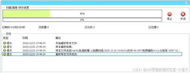 STEP2:等待扫描完成,添加样本后程序会解析样本文件的各种参数(类型/拍摄时间 /速率/编码等),这些参数可以助力扫描算法精确定位同参数的视频文件。