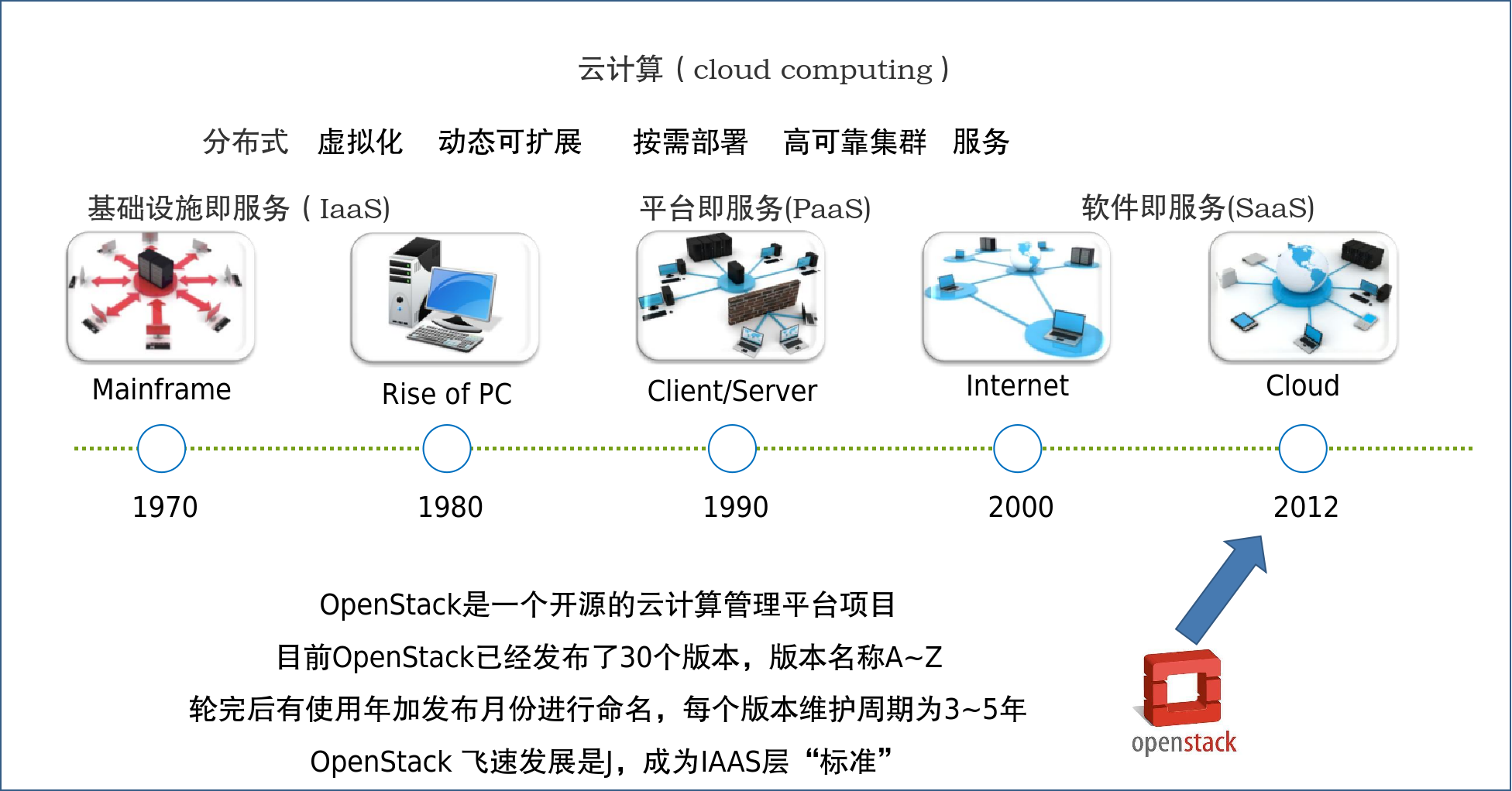 云计算(cloud computing)是分布式计算的一种,指的是通过网络"云"将巨大的数据计算处理程序分解成无数个小程序,然后,通过多部服务器组成的系统进行处理和分析这些小程序得到结果并返回给用户。云计算早期,简单地说,就是简单的分布式计算,解决任务分发,并进行计算结果的合并。因而,云计算又称为网格计算。通过这项技术,可以在很短的时间内(几秒钟)完成对数以万计的数据的处理,从而达到强大的网络服务 Juno------2014年10月 OpenStack基金会发布的第十个版本。新增包括围绕 Hadoop和 Spark集群管理和监控的自动化服务和支持软件开发、大数据分析和大规模应用架构在内的342个功能点,标志着 Open Stack正向大范围支持的成熟云平台快速前进。自 Openstack项目成立以来,超过200个公司加入了该项目,其中包括AT&T、AMD、 Cisco、Dell、IBM、 Intel、 Red hat等。目前参与 Openstack项目的开发人员有17000,来自139个国家,这一数字还在不断增长中。来自咨询机构 Forrester的分析表示, OpenStack已经逐步成为事实上( de facto)的基础架构云(IaaS)标准。
