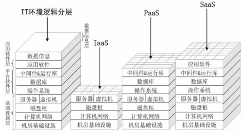 云计算服务提供商,只负责出租本层以及以下各层,更上层的部署和管理由租户自己负责。