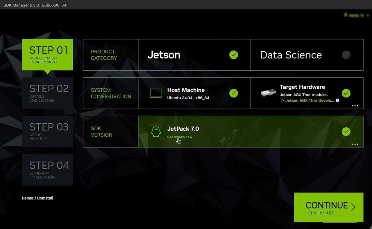 一开始尝试在Thor上直接安装GROOT-N1.5的环境,发现该开发版的版本和架构都比较新,很难适配官方代码仓库现有的环境。