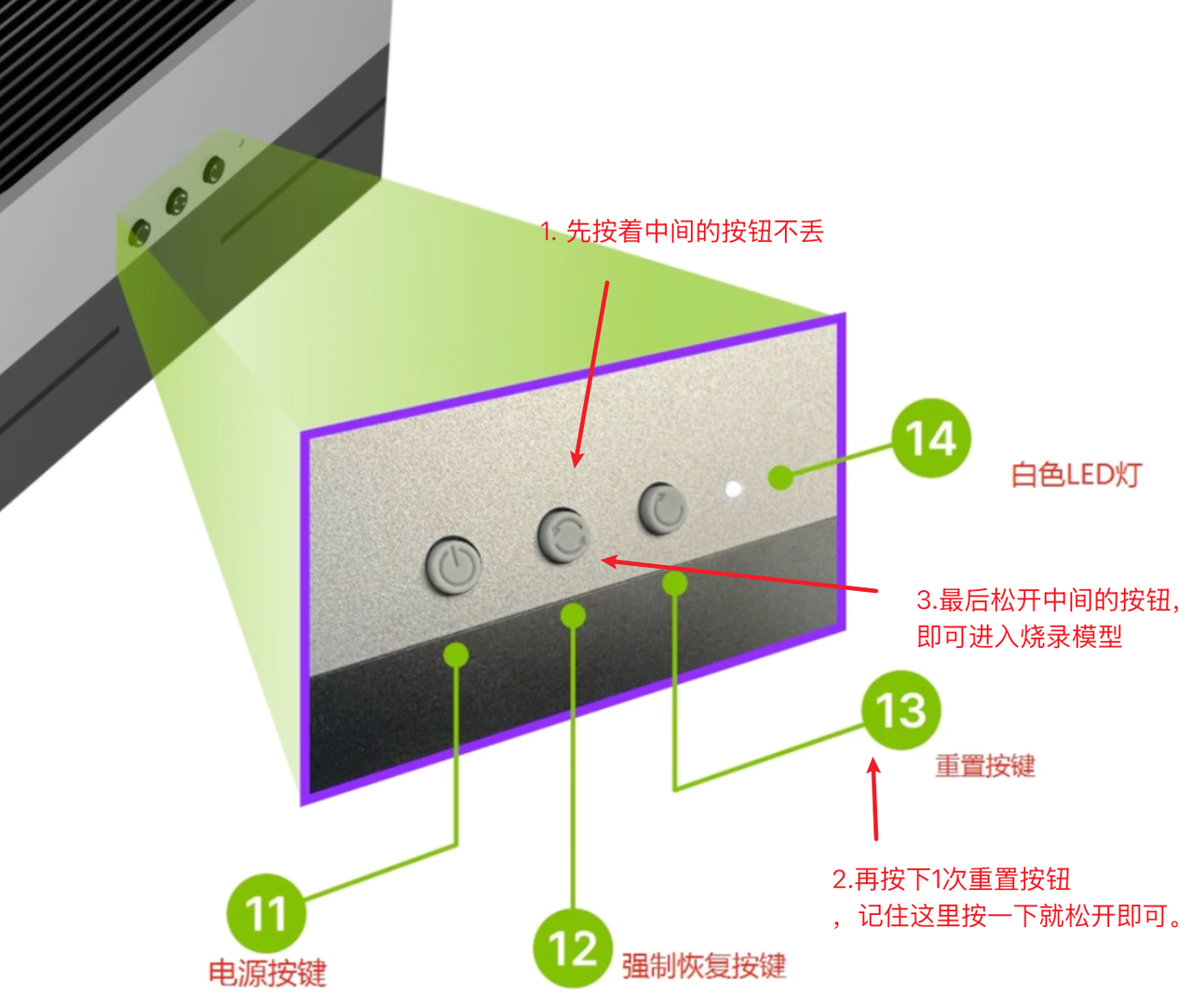 但是在装机之前,我们需要将Thor切换到烧录模式,具体操作如下图所示: