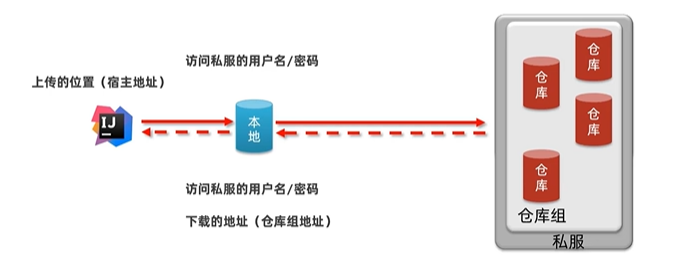 - 私服是一台独立的服务器,用于解决团队内部的maven资源共享与同步问题。