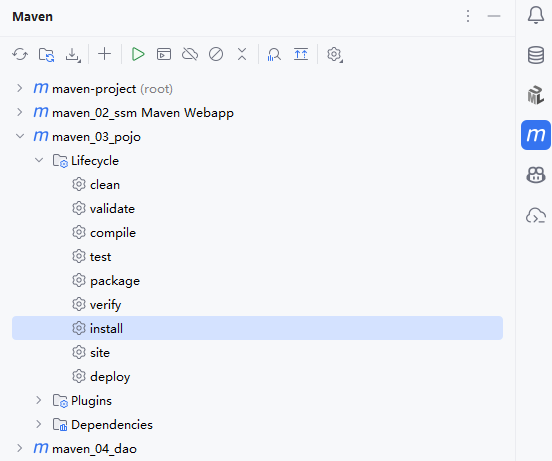 通过Maven-Lifecycle-install命令将模块a安装到本地仓库。(团队内部开发需要将模块安装到团队内部课共享的仓库中,即私服)