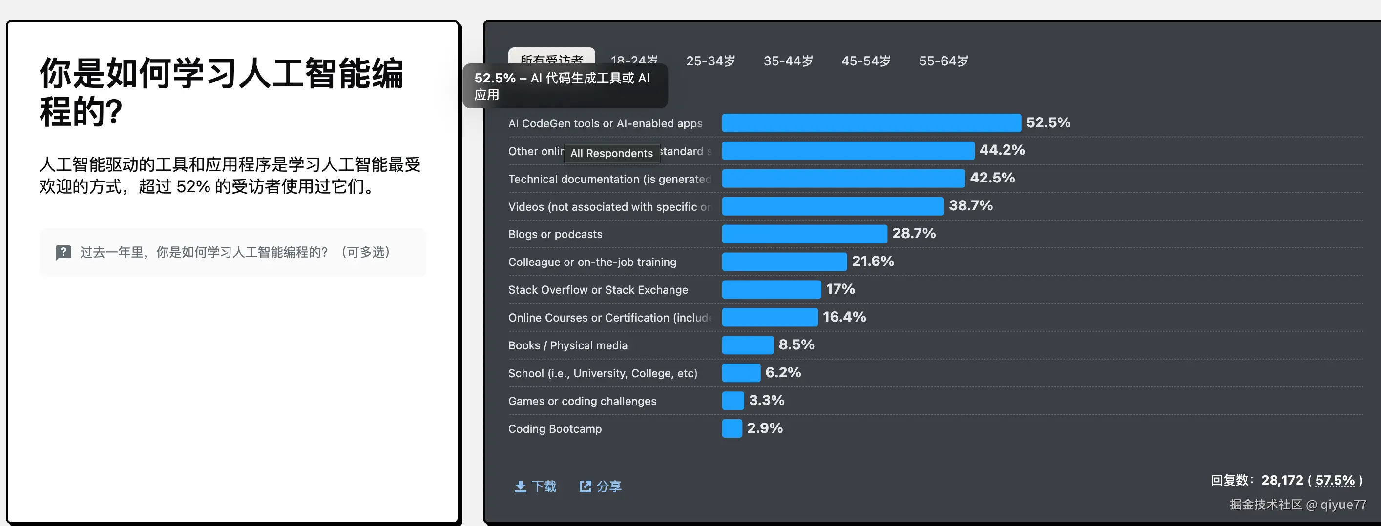 AI浪潮下,编程领域的学习模式绝对是翻天覆地的变化,传统的学文档 => 学视频 => 写demo => 做测试验证,流程长,成本高。更多人选择了AI生成工具/应用辅助学习。