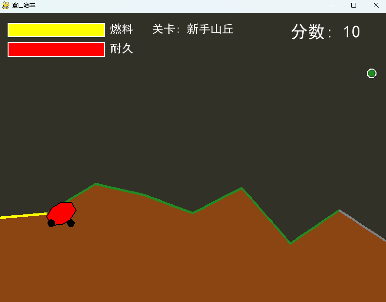 - 核心玩法:车辆在随机地形上行驶,通过控制方向 / 加速保持行驶,消耗燃料并维持耐久;