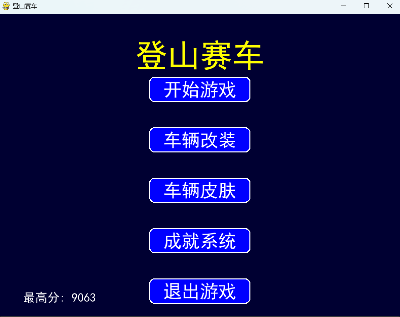 title = get_font(int(64 * scale_y)).render("登山赛车", True, YELLOW)