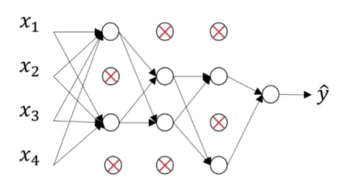 下图是使用Dropout正则化的神经网络,且丢弃率p=0.5: