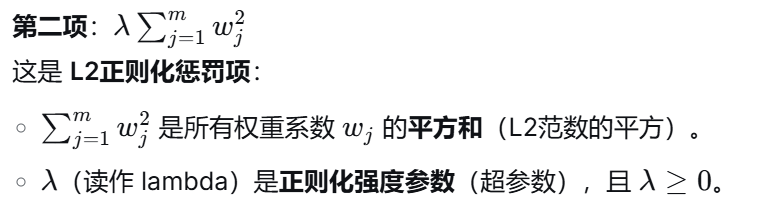 岭回归是一种在普通线性回归基础上加入了L2正则化惩罚项 的机器学习算法。其核心思想是在最小化预测误差的同时,对模型所有权重系数的平方和进行惩罚,从而约束模型的复杂度,防止过拟合。