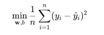 普通线性回归的目标是找到一组系数(权重),使得预测值y和真实值之间的均方误差最小。