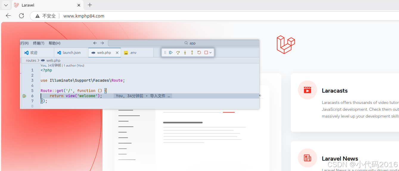 然后在 routes/web.php 中打个断点, 访问应用首页即可