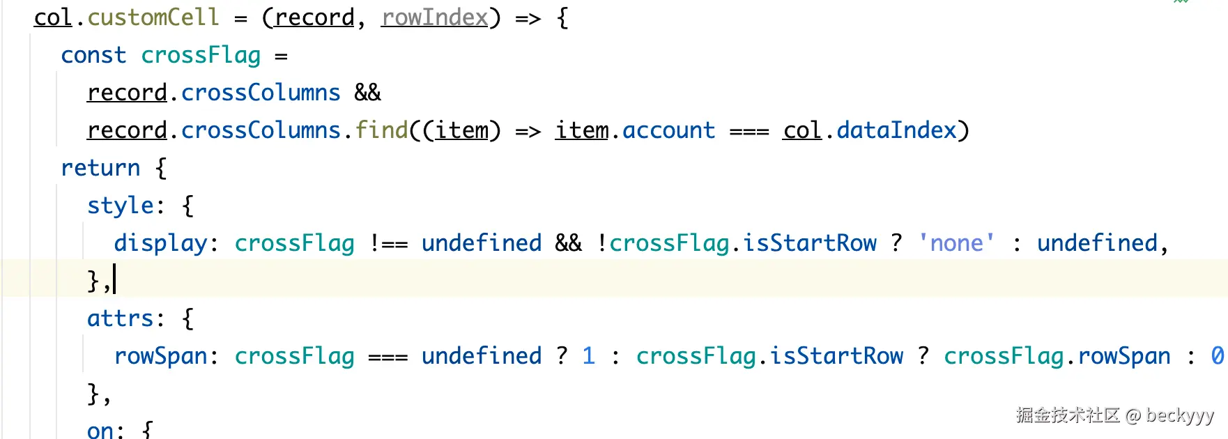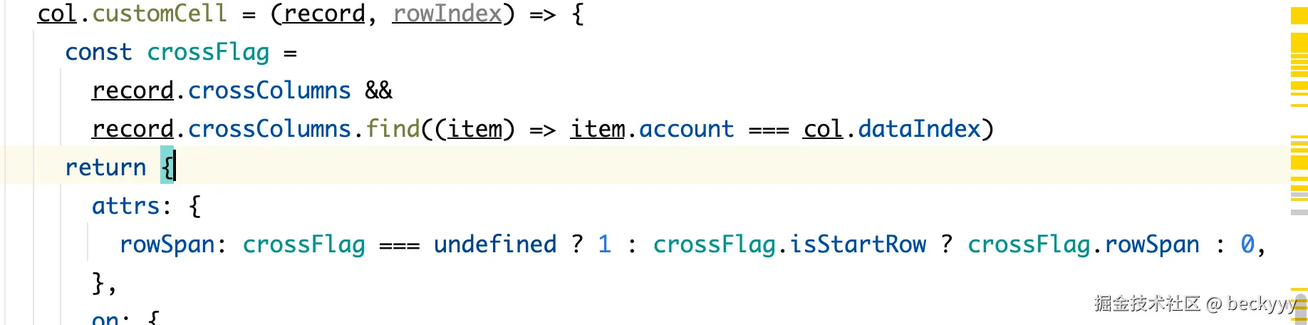 再向后遍历碰到存在多个行程的单元格就表示跨行结束,得到了rowSpan的值。