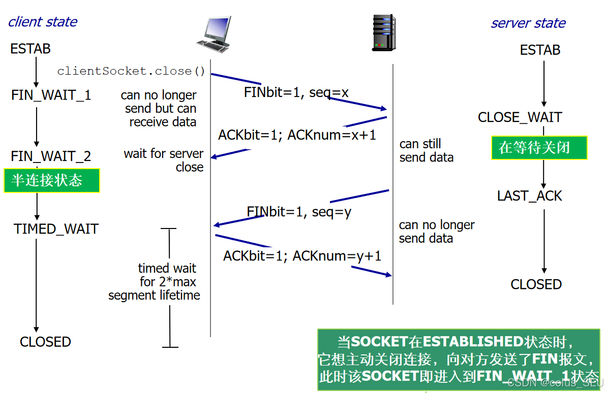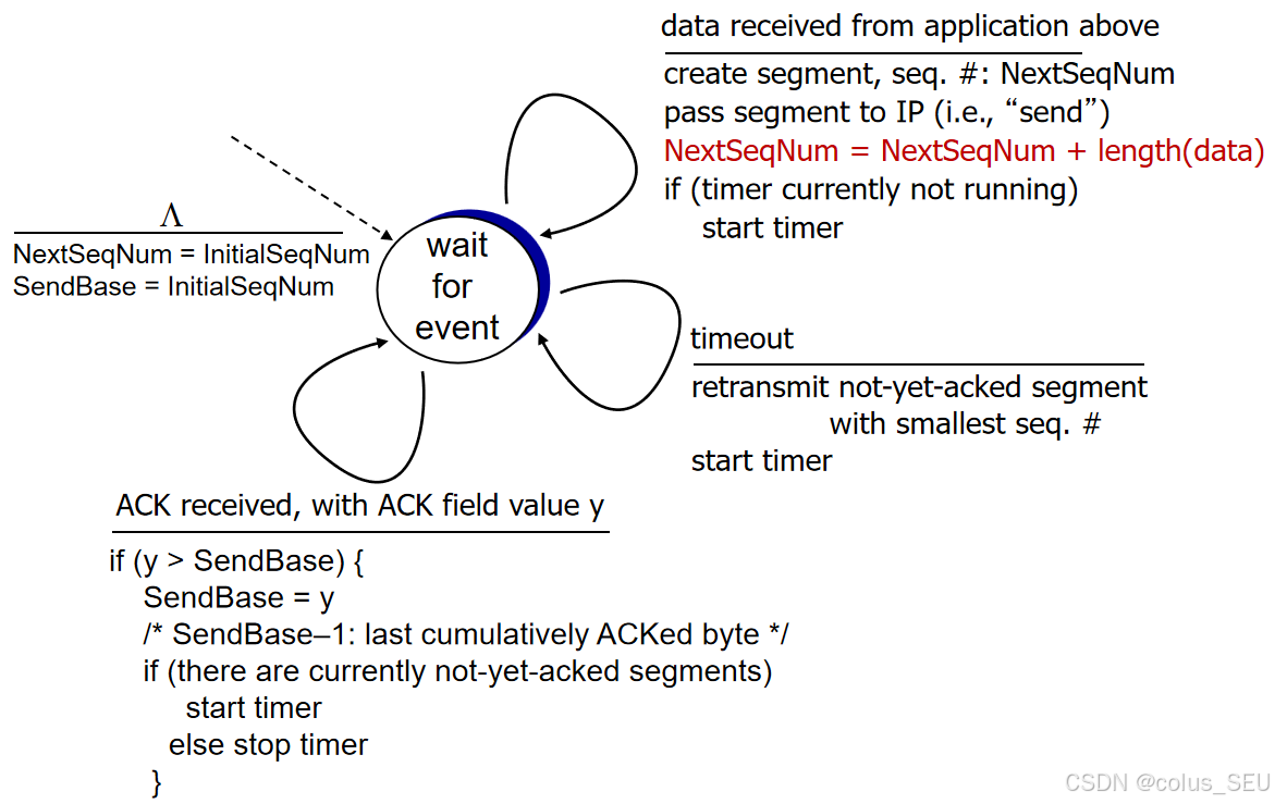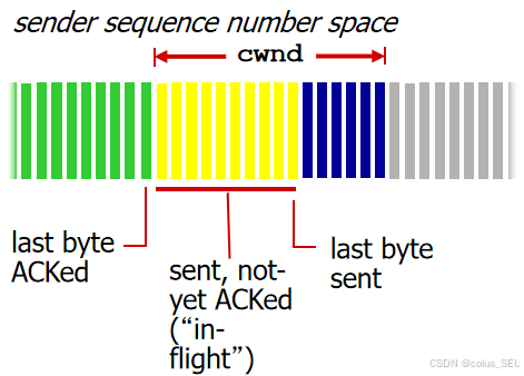 LastByteSent - LastByteAcked < min(cwnd, RcvWindow)。发送速率约为min(cwnd, RcvWindow) / RTT。