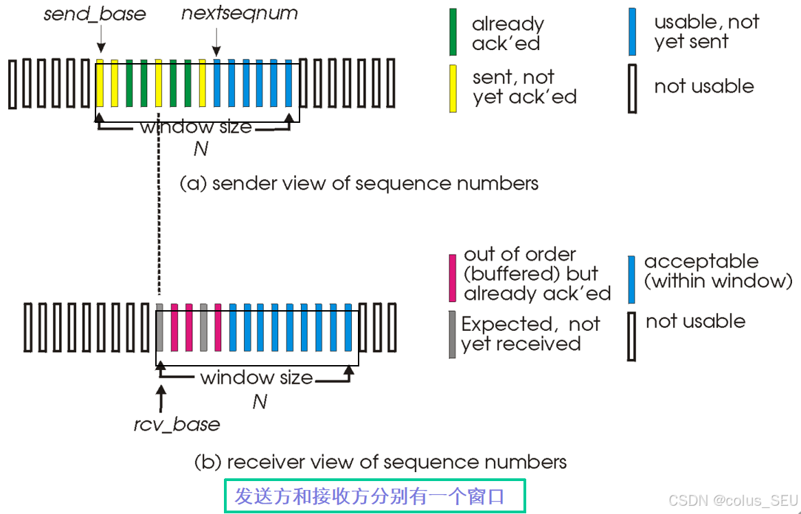 | 控制方 | 发送方根据网络反馈(丢包、延迟)调整速率。 | 接收方通过通告 RcvWindow 来控制发送方。 |