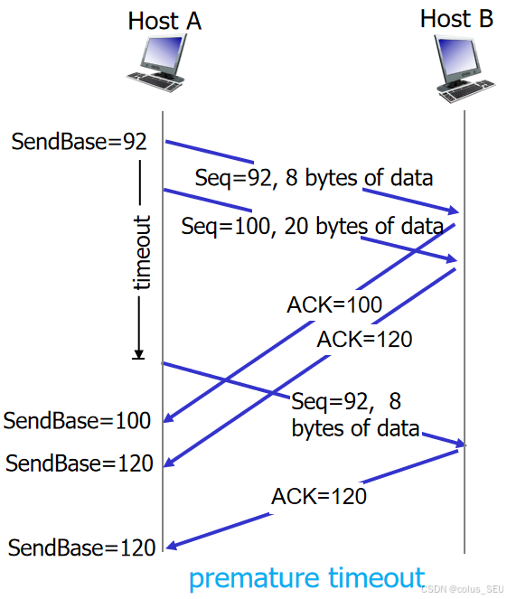 cwnd = ssthresh + 3 MSS(或cwnd = ssthresh)。 -