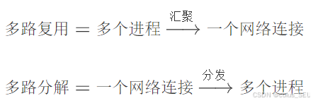 - 发送端将多个应用进程的数据汇聚成一个数据流,通过单一的网络连接发送出去。