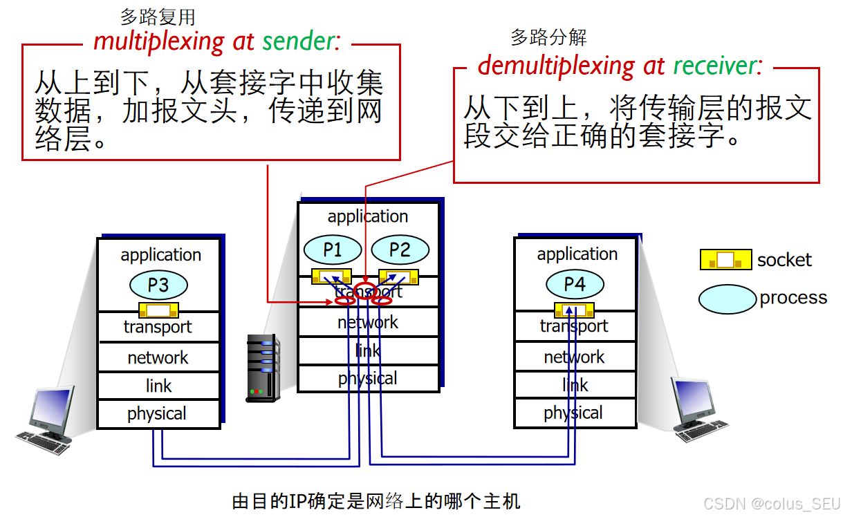 多路分解 (Demultiplexing at Receiver) : 从下到上